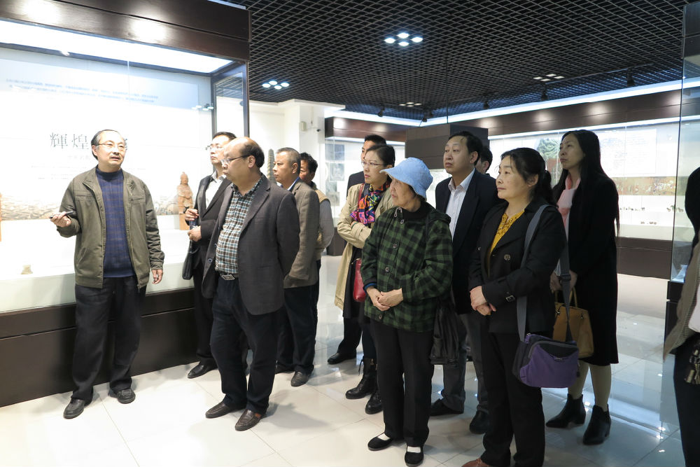 4月20日下午,民建開封市委副主委蘇擎宇、秘書長管繼平等一行十余人蒞臨我校大觀博物館參觀訪問。我校黨委組織部部長秦雪峰陪同參觀。