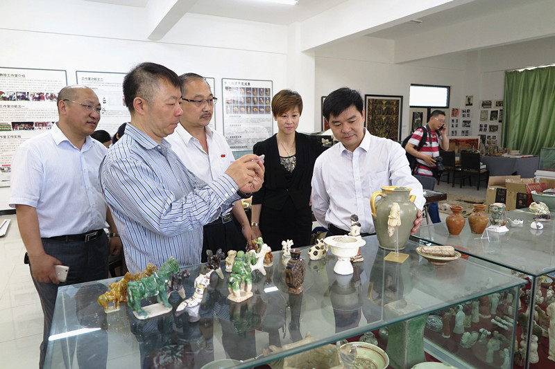 本站訊 5月10日上午,紹興市越城區(qū)委常委、紹興國(guó)家高新開(kāi)發(fā)區(qū)管委會(huì)副主任壽建華,副區(qū)長(zhǎng)應(yīng)建紅及紹興市越城區(qū)相關(guān)政府部門代表一行,到我校大觀博物館、宋文化工藝品技能大師工作室和魏躍進(jìn)教授工作室參觀交流。