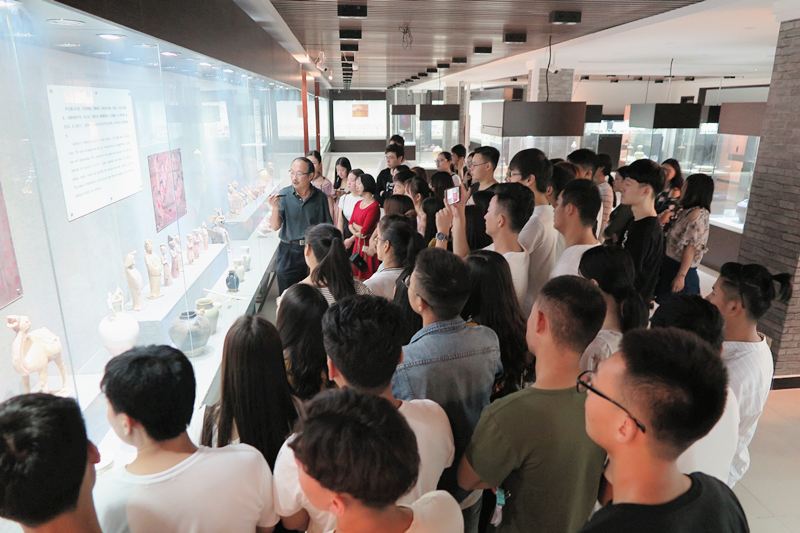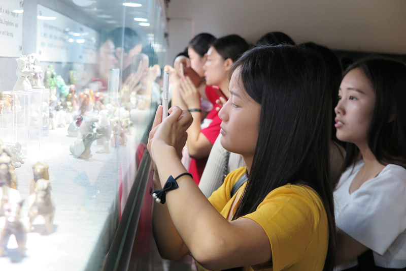 本站訊 近日,根據人才培養方案的課程安排,藝術設計學院2015級視覺傳播設計與制作專業,裝潢藝術設計2班的學生走進大觀博物館。由專業教師務海濤帶領,用“教學做”合一的授課形式,以館藏文物為素材,實地開展書籍裝幀與印刷課程的教學。