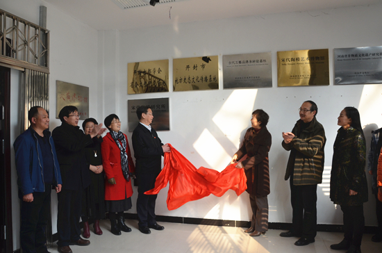 本站訊 3月22日下午,開封市地方史志文化傳播基地在我校大觀藝術博物館掛牌。市史志辦主任曹景憲、紀檢組長孫玲、副主任張雁冰,以及我校副校長趙輝、藝術設計學院院長魏躍進、書記李春霞等參加了揭牌儀式。儀式由魏躍進院長主持。