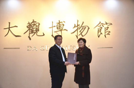 揭牌儀式后,曹景憲主任代表地方史志辦公室向我校大觀藝術博物館捐贈史志書籍。隨后史志辦工作人員在魏躍進院長的講解下參觀了大觀藝術博物館,其間并就如何傳承弘揚優秀文化、挖掘開封歷史文化資源進行了交流。