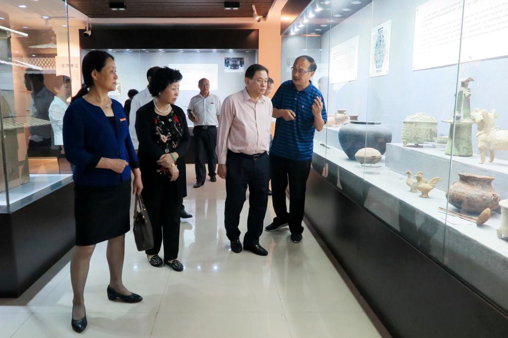 李金松董事長一直重視學校的文化傳承與創新工作,重視大觀藝術博物館的建設。董事長一行對博物館展廳、多媒體廳、體驗廳、咖啡廳等進行了實地參觀考察,特別對館藏文物、文化背景、育人平臺建設、工作成果等進行了深入的了解和交流。