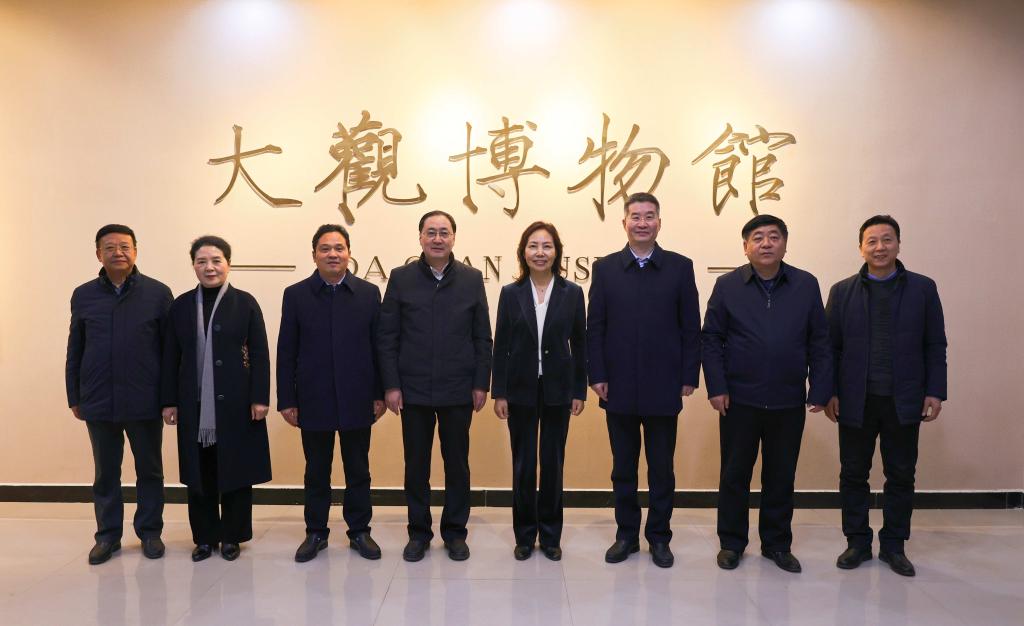 本站訊 12月27日下午,黃淮學(xué)院黨委書記劉先省、校長劉彥明帶領(lǐng)校領(lǐng)導(dǎo)班子成員及黨政辦公室相關(guān)人員蒞臨大觀博物館參觀考察。我校黨委書記譚貞、副校長萬是明以及相關(guān)部門負(fù)責(zé)人陪同考察。