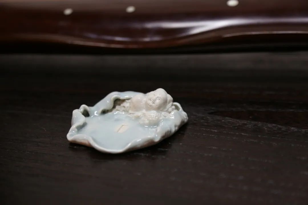 明代文震亨在《長物志》中說:“筆覘,定窯、龍泉小淺碟俱佳,水晶、琉璃諸式俱不佳,有玉碾片葉為之者,尤俗?!笨梢姡€是陶瓷燒制的筆舔經得起市場的考驗,經得住文人的挑剔。