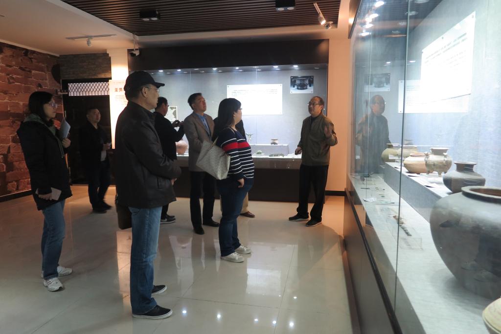 魏躍進教授向來訪的代表團表示了歡迎,并向代表團介紹了我館的基本概況。代表團先后參觀了文物展廳、多媒體放映廳、體驗廳、咖啡廳等,了解了我館的館藏文物、文化傳承與創新育人職能、社會服務等情況。