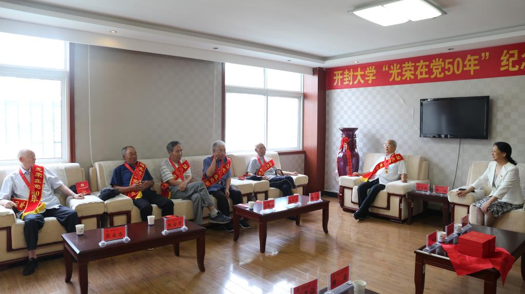 陳燦書記代表學校黨委向獲頒“光榮在黨50年”紀念章的老同志致以崇高的敬意,她指出,各位老黨員“光榮在黨50年”,在黨愛黨、忠誠一輩子,在黨為黨、奮斗一輩子,在黨憂黨、奉獻一輩子,為開封大學教育事業發展作出了重要貢獻,她希望老黨員、老領導、老同志繼續弘揚共產黨人的優良品質,堅持離崗不離黨、退休不褪色,充分發揮政治優勢、經驗優勢、威望優勢,繼續為開封大學教育事業獻計獻策、發光發熱。