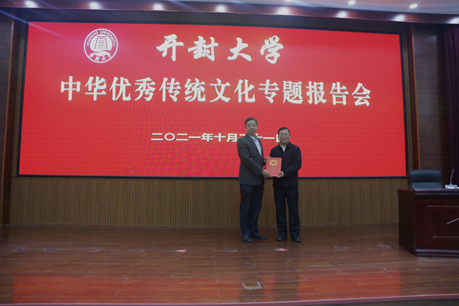 為加強傳統文化研究,有力推動學校教學、科研工作不斷發展,我校聘請管仁富為客座教授,校長宋曉煒向管仁富頒發了聘書。
