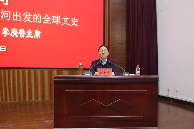 李庚香以《大哉黃河一一部從黃河出發的全球文明史》為題,圍繞中原學與黃河學的關系、黃河文化研究應該聚焦的五大內容、黃河學的未來三個方面,詳細介紹了黃河文明在中華文明中的重要地位,深刻闡釋了傳承弘揚黃河文化意義,強調了新時代背景下,我們的使命就是要建設文明黃河軸心區,書寫一部從黃河出發的全球史,再塑黃河文化引領力,延續歷史文脈,堅定文化自信,彰顯中華民族本色,增強中華民族的底氣,增進中華民族建構人類命運共同體的勇氣,契合新時代高質量發展的內在要求,為最終實現中華民族偉大復興的中國夢凝聚精神力量。