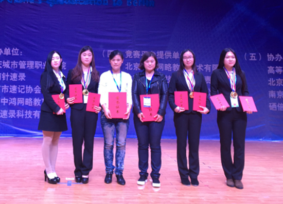 10月24日,由中國職業技術教育學會教學工作委員會和中國中文信息學會速記專業委員會聯合主辦的2016年“全國第四屆文秘速錄職業技能競賽暨通往柏林中國資格賽”在重慶落下帷幕。本次職業技能大賽圍繞文秘速錄專業辦文、辦事、辦會三項核心技能,設置文本創建及排版、蒙目速錄、會議公文撰寫、實時記錄、PC文字校對、極限看打和辦公禮儀等7個競賽內容。來自全國19個省市43個速錄專業機構、本科及高職院校的215名參賽選手,通過7項競賽內容的激烈角逐,最終我校師生取得優異成績。