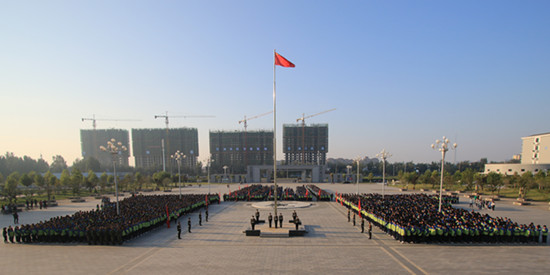 本站訊 9月29日早上,我校在大觀廣場隆重舉行2016級新生升國旗儀式。校黨委副書記儲建新、校工會主席成芳出席了升旗儀式,全體教官、軍訓團團長、我校黨委辦公室、黨委組織部、宣傳部、學工部、校長辦公室、保衛處等部分職能處室的負責人、各學院黨總支書記、副書記、新生輔導員及5000余名2016級新生參加了此次升國旗儀式。升國旗儀式由校團委副書記楊艷麗主持。