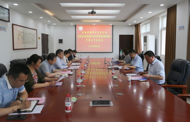 調研匯報會在行政樓第三會議室進行,宋曉煒代表學校對張學勇一行的到來表示熱烈歡迎,對省教科文衛體工會、開封市總工會給予我校工會工作的大力支持表示感謝,并介紹了學校基本情況和工會特色工作。成芳代表學校進行了教職工能力素質建設情況匯報。