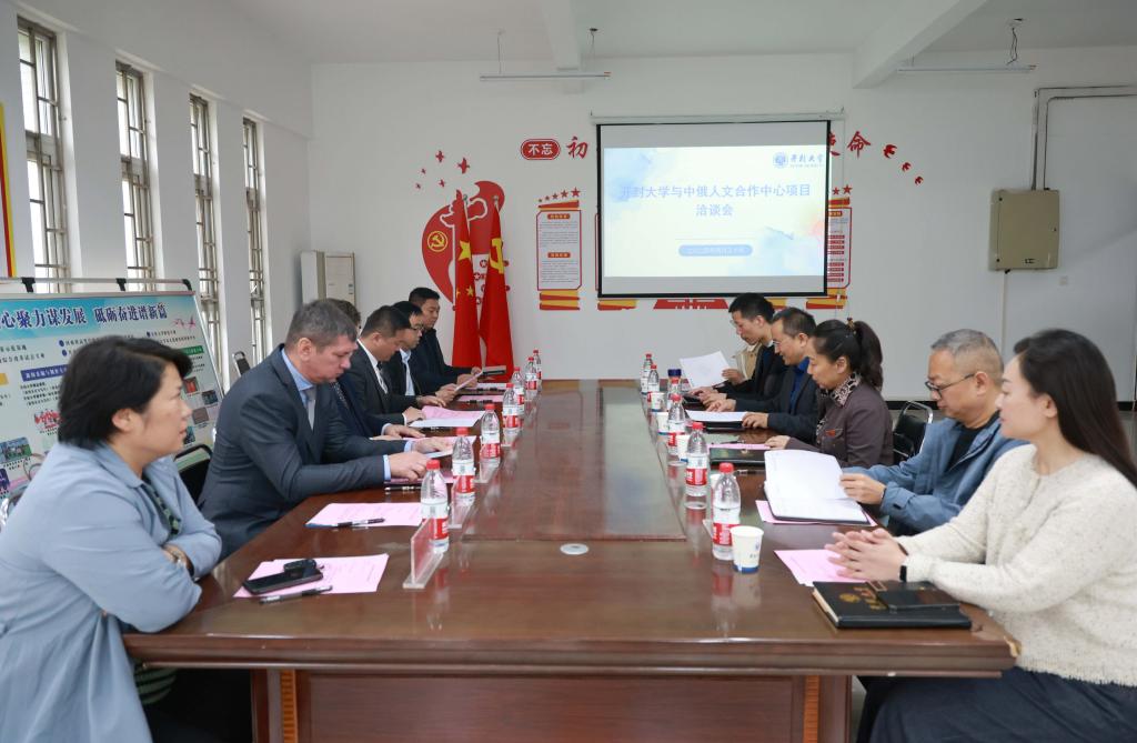 本站訊 4月30日上午,中俄人文合作中心中方主席張精衛、俄方常務主席列夫基尼·葉夫格尼率代表團一行7人來校訪問。校黨委委員、副校長李治,科研外事處、人文學院、外國語學院、國際教育學院負責人參加會談。會議由國際教育學院副院長蔣大山主持。