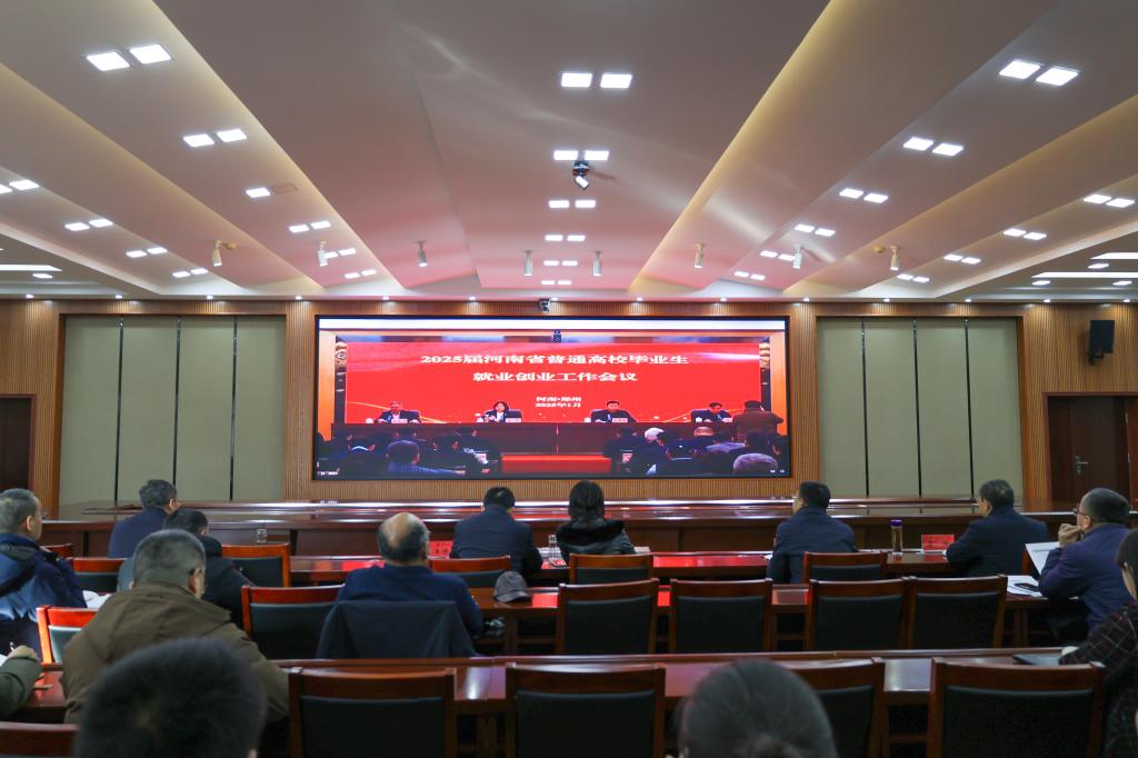 為深入學習貫徹習近平總書記關于高校畢業(yè)生就業(yè)工作的重要指示批示精神,全面落實黨的二十屆三中全會精神和全國全省教育大會精神。1月6日上午,省教育廳、省人社廳、省工信廳組織召開2025屆河南省普通高校畢業(yè)生就業(yè)創(chuàng)業(yè)工作視頻會議,我校在行政樓第二會議廳設分會場。校黨委書記譚貞、校長王德如出席會議。
