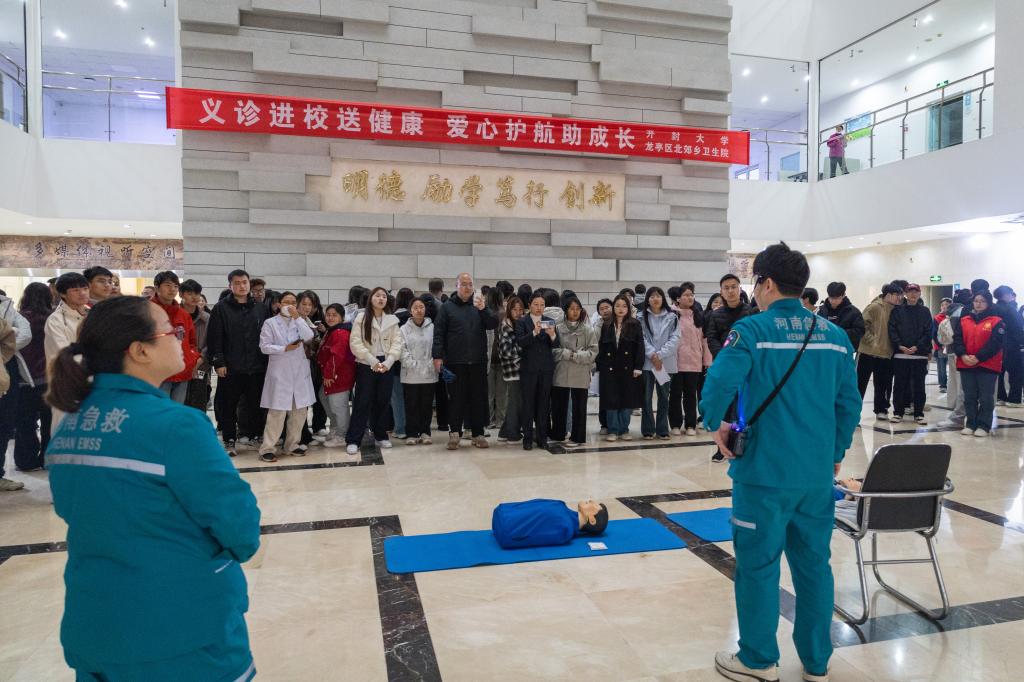 3月27日下午,龍亭區(qū)北郊鄉(xiāng)衛(wèi)生院聯(lián)合開(kāi)封市人民醫(yī)院組建健康宣講團(tuán)隊(duì),走進(jìn)我校開(kāi)展“健康知識(shí)進(jìn)校園及免費(fèi)義診”活動(dòng),活動(dòng)在校圖書(shū)館舉行。校黨委書(shū)記譚貞、校長(zhǎng)王德如出席活動(dòng)。