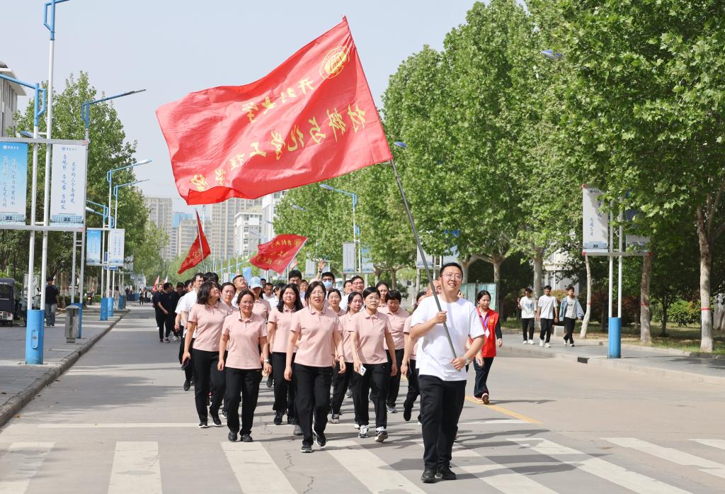 本站訊 為豐富校園文化生活,倡導(dǎo)健康生活理念,增強(qiáng)教職工凝聚力,校工會于4月17日下午隆重舉辦教職工團(tuán)體健步走比賽。校黨委書記譚貞、校長王德如出席活動。校黨委副書記張合主持開幕式。