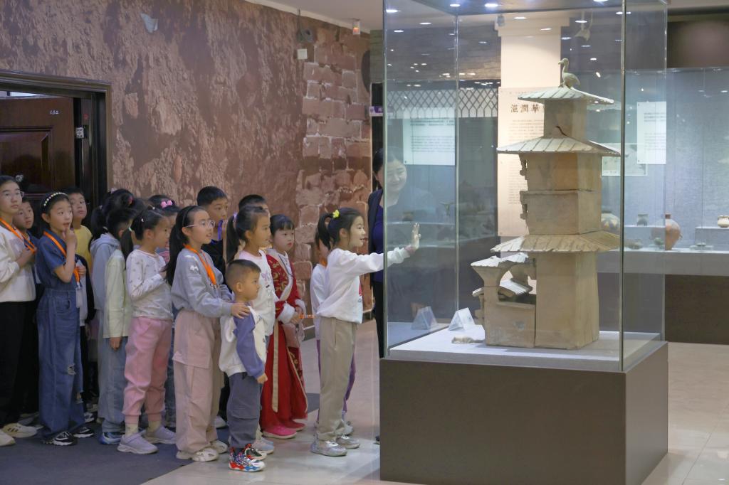 隨后,小記者們來到了大觀博物館近距離觀賞宋代陶模等珍貴文物,在專業講解中仿佛穿越回千年前的汴梁城。