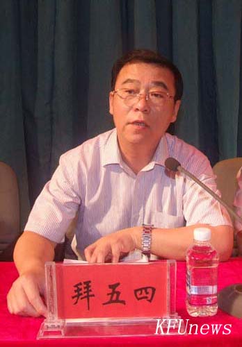 拜校長希望全校各級黨組織和全體共產黨員要以十七大精神和科學發展觀來指導認識和實踐,進一步解放思想,按照省委書記盧展工提出“平凡之中的偉大追求,平靜之中的滿腔熱血,平常之中的極強烈責任感”的“三平精神”的要求,堅定信念,團結一致,高標準、高效率的完成學校承擔的各項工作任務。他堅信,通過全體黨員領導干部的身先士卒和全校教職師生員工的共同努力,一定會為學校的改革發展開創一個更為寬廣的新局面!。