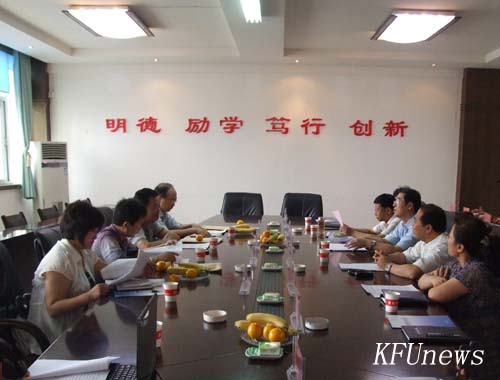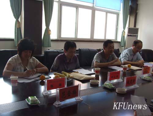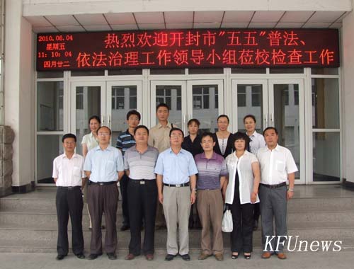 本站訊 6月4日上午,開封市“五五”普法、依法治理工作檢查組組長王聚彬及成員田衛軍、李景友、張麗一行4人蒞臨我校檢查驗收“五五”普法和依法治理工作。校領導拜五四、儲建新、萬是明、范金梅、杜愛靈,我校“五五”普法工作領導小組成員單位負責人參加了匯報會。