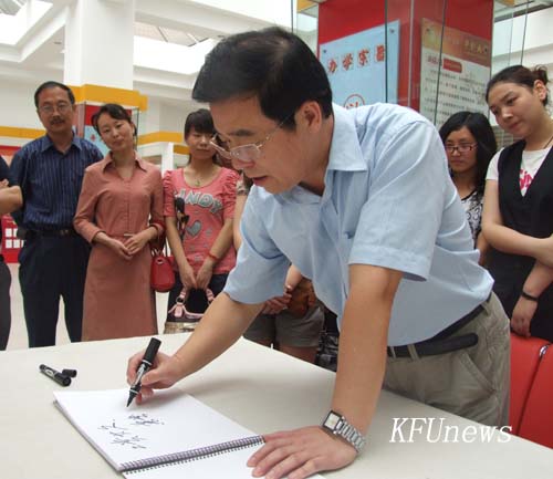 開幕式結束后,校領導和嘉賓在工美學院領導的陪同下觀看了畢業設計作品展,莫書記、拜校長對學生作品給予了高度評價,同時對畢業生提出了希望,并為本次作品展題詞留念。