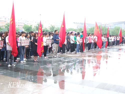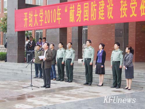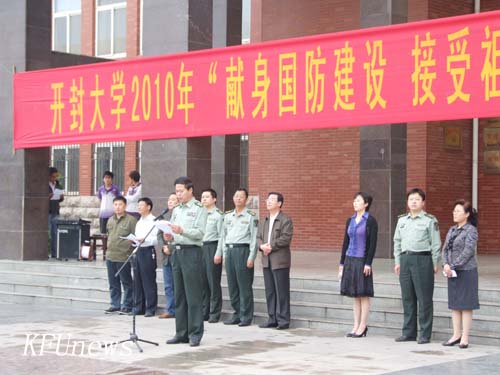 本站訊 5月21日下午,我校舉行2010年“獻身國防,接受祖國挑選”簽名活動。開封市軍分區(qū)參謀長張中華、金明區(qū)武裝部部長夏憲勇、政委胡俊偉、開封市軍分區(qū)參謀馬明,我校校領(lǐng)導儲建新、趙輝、范金梅,宣傳部、學工部、教務處、團委、保衛(wèi)處、就業(yè)指導中心等部門負責人,以及2010屆應屆畢業(yè)生近千人參加了簽名活動。簽名活動由副校長萬是明主持,校長拜五四和張中華發(fā)表熱情洋溢的講話并在活動現(xiàn)場簽名。