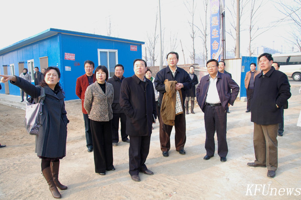 本站訊 2010年2月23日上午,市委書記劉長春、市長周以忠、市長級干部朱麗萍等領導到我校北校區視察建設工作。他們在我校校領導莫華林、拜五四、儲建新、范金梅、何世玲等的陪同下,參觀視察了北校區的建筑工地,并對我校北校區發展建設的情況進行詢問。
