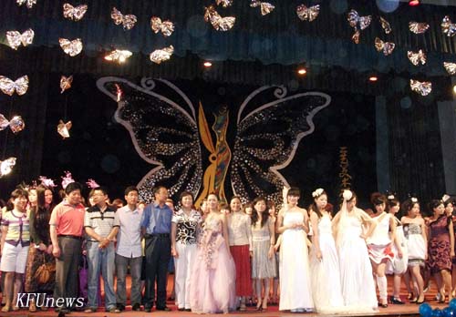 本站訊 工藝美術(shù)學(xué)院服裝設(shè)計(jì)專業(yè)2010屆畢業(yè)作品暨“雙導(dǎo)師” 制成果展示會(huì),于6月8日晚在金松大禮堂舉行。開封大學(xué)副校長(zhǎng)趙輝,教務(wù)處長(zhǎng)吳璽玫、實(shí)訓(xùn)處處長(zhǎng)肖興達(dá)及開封服裝商會(huì)會(huì)長(zhǎng)楊玉慶、新春制衣公司祁文強(qiáng)等服裝企業(yè)負(fù)責(zé)人、河南大學(xué)藝術(shù)學(xué)院、黃河水利職業(yè)技術(shù)學(xué)院、開封技師學(xué)院等兄弟院校的領(lǐng)導(dǎo)出席了展示會(huì)。
