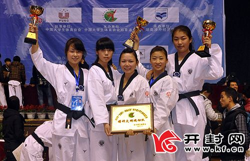 開封網訊 記者魏海洋報道 11月15日至19日,由中國大學生體育協會跆拳道分會主辦的2012年中國大學生華中區跆拳道聯賽在湖南涉外經濟學院舉行。湖南、湖北、河南、江西四個省份32所院校的276名運動員參加了此次比賽。 11月24日,記者從開封大學獲悉,代表我省參賽的開封大學代表對取得5金1銀的佳績。