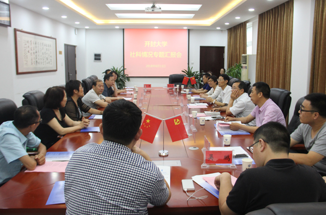 本站訊 6月13日下午,河南省社會科學(xué)界聯(lián)合會副主席王喜成及李新年、齊善兵、劉紹才、吳鵬、陳衛(wèi)華,開封市社會科學(xué)界聯(lián)合會主席張琳及吳良、張燕華、閆紹奇一行10人蒞臨我校就意識形態(tài)工作、社科理論界基本情況進(jìn)行專題調(diào)研。我校在行政樓三樓會議室召開專題匯報會。校黨委副書記儲建新、副校長曾小平出席了匯報會,黨委宣傳部、科研處、思想政治理論教研部負(fù)責(zé)人和部分教師參加了匯報會。匯報會由黨委宣傳部部長樊玉霞主持。