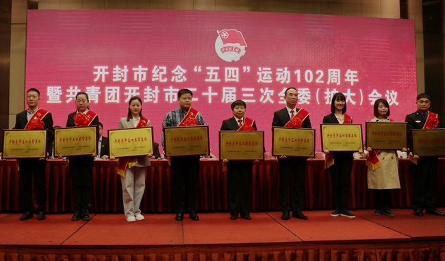 4月29日上午,開封市紀念“五四”運動102周年暨共青團開封市二十屆三次全委(擴大)會議召開。我校青年組織和個人獲得多項榮譽。