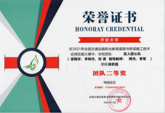 本站訊 11月27至28日,由全國交通運(yùn)輸職業(yè)教育教學(xué)指導(dǎo)委員會主辦的2021年全國交通運(yùn)輸職業(yè)教育道路與橋梁施工技術(shù)應(yīng)用技能大賽總決賽落下帷幕。經(jīng)過兩天激烈角逐,我校土木建筑工程學(xué)院2支代表隊(duì)取得了團(tuán)體二等獎2項(xiàng),個人二等獎2項(xiàng)、個人三等獎3項(xiàng)的優(yōu)異成績。